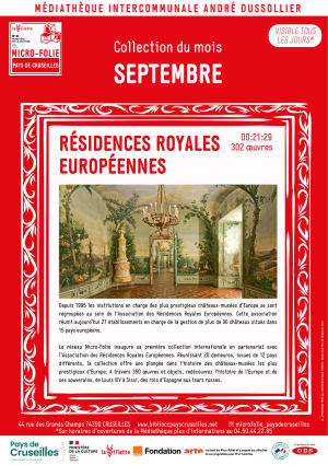 Le réseau Micro-Folie inaugure sa première collection internationale en partenariat avec l’Association des Résidences Royales Européennes. Réunissant 20 demeures, issues de 12 pays différents, la collection offre une plongée dans l’histoire des châteaux-musées les plus prestigieux d’Europe. A travers 350 œuvres et objets, redécouvrez l’histoire de l’Europe et de ses souverains, de Louis XIV à Sissi, des rois d’Espagne aux tsars russes.Entrée libre et gratuite