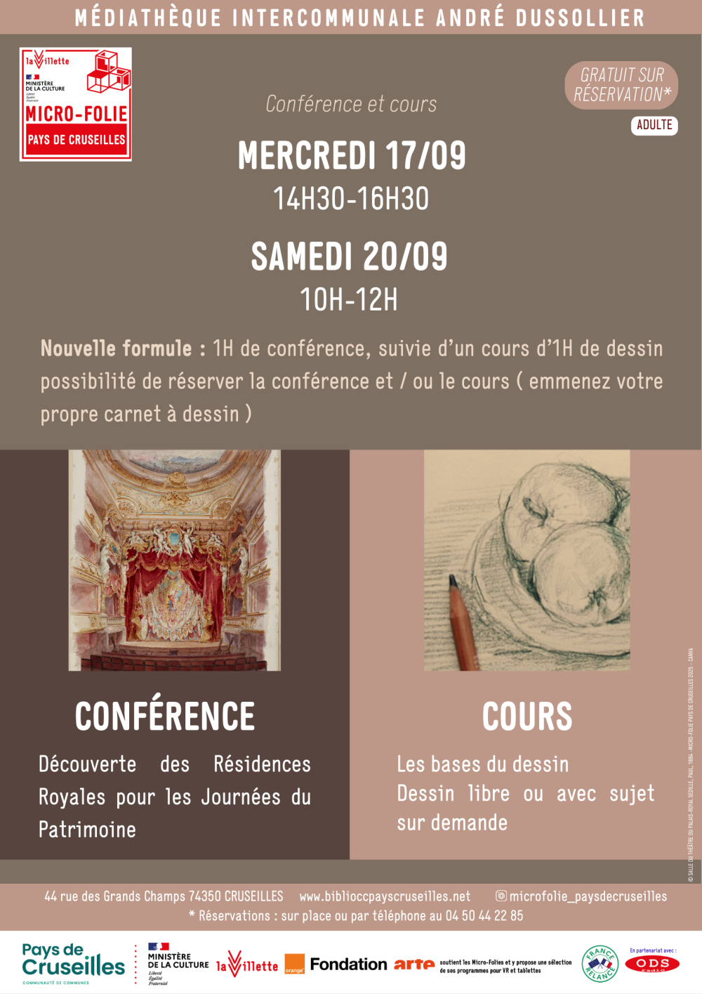 Nouvelle formule : 1H de conférence, suivie d’un cours d’1H de dessin possibilité de réserver la conférence et / ou le cours ( emmenez votre propre carnet à dessin ).